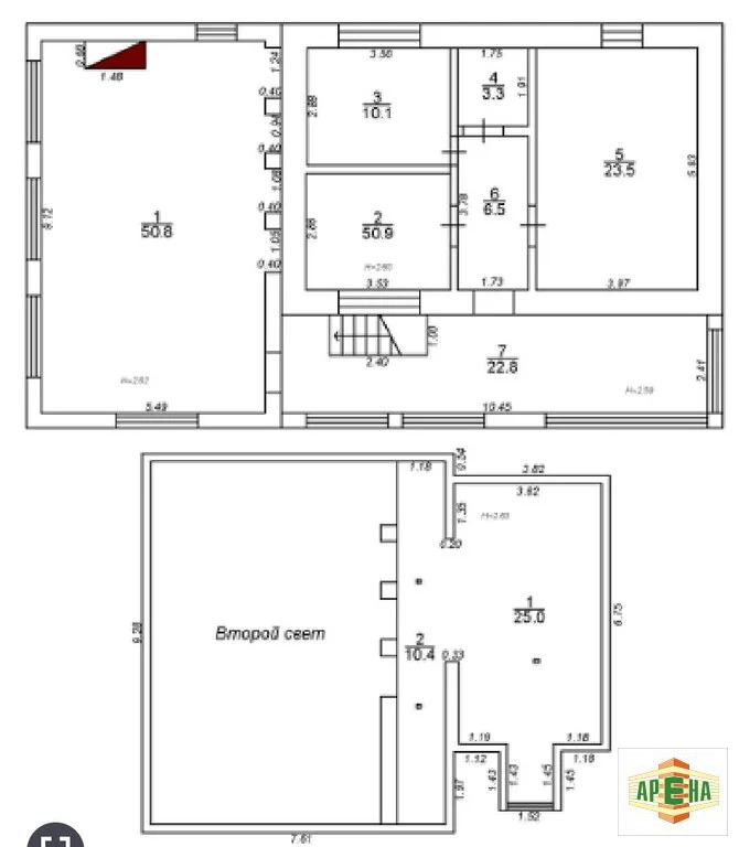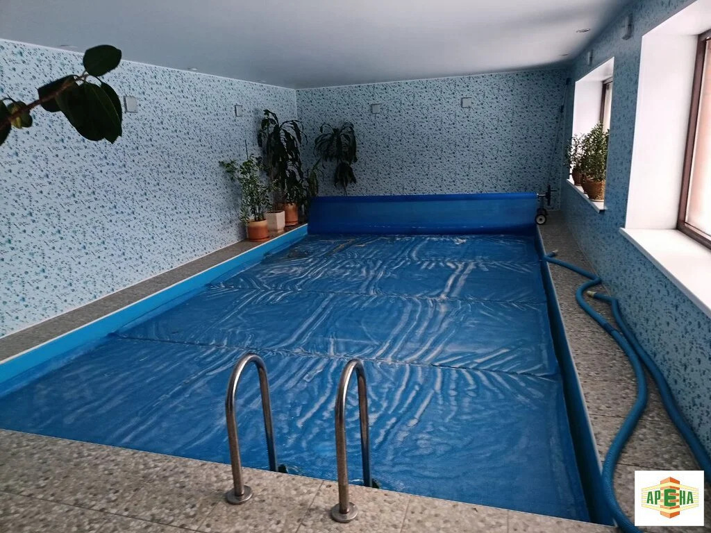 Очень граммотное и функциональное расположение дома и пристроя к нему: сделаного из кирпича в 1 этаж. В котором расположили большую комнату отдыха для релакса(спортзал с тренажерами ), просторная сауна(обшита вагонкой, сделана с душой) и душ+ведро для обливания, и еще большой глубокий бассейн 6х4(система очистки воды, фильтрация, слив, вода комфортная с подогревом, все по современному), панарамные окна дают много света, создают уют.
